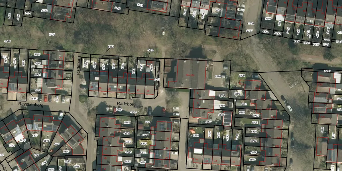 Het perceel waarop Radeborg 14-B staat heeft een oppervlakte van 660 m². Dit is een groot perceel. De perceeloppervlakte wordt geregistreerd door het Kadaster. Gedetailleerde informatie over de maten van dit perceel kunt u vinden in het rapport Kadastrale kaart met maatvoering van Radeborg 14-B.
