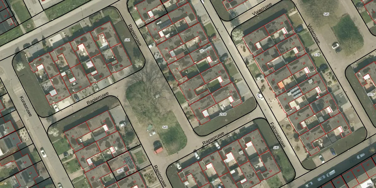 Het perceel waarop Rapierruwe 6 staat heeft een oppervlakte van 2755 m². Dit is een zeer groot perceel. De perceeloppervlakte wordt geregistreerd door het Kadaster. Gedetailleerde informatie over de maten van dit perceel kunt u vinden in het rapport Kadastrale kaart met maatvoering van Rapierruwe 6.