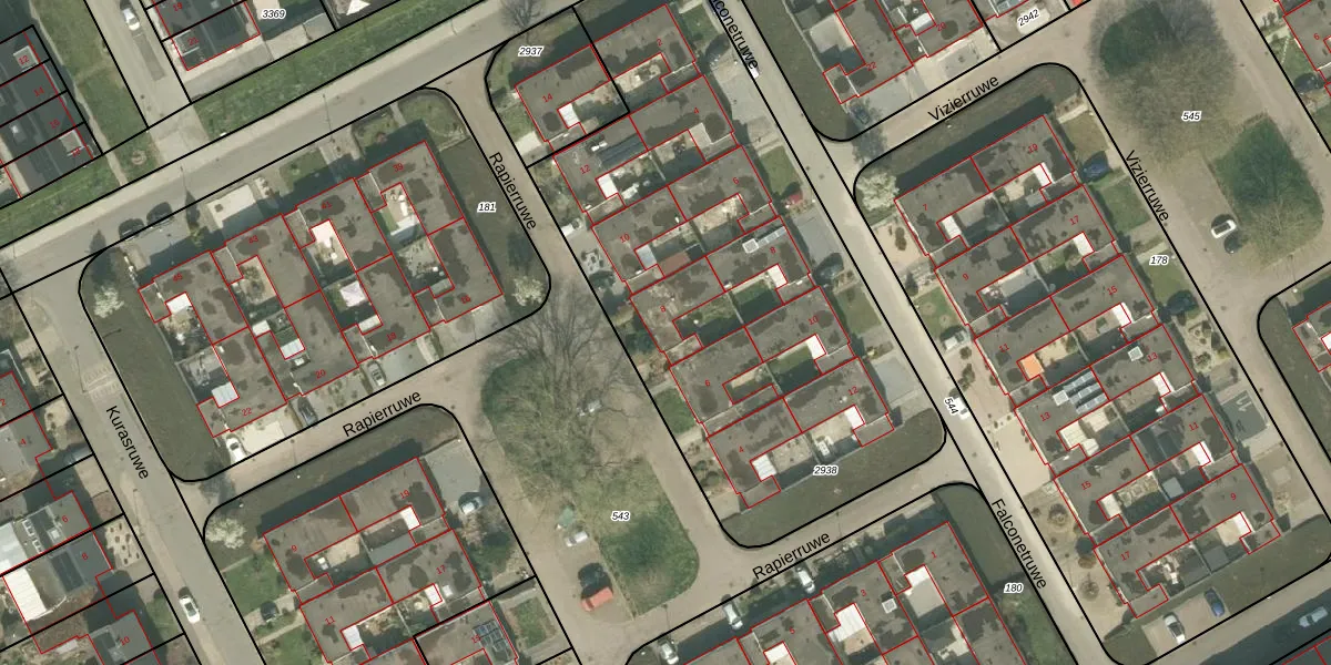 Het perceel waarop Rapierruwe 8 staat heeft een oppervlakte van 2755 m². Dit is een zeer groot perceel. De perceeloppervlakte wordt geregistreerd door het Kadaster. Gedetailleerde informatie over de maten van dit perceel kunt u vinden in het rapport Kadastrale kaart met maatvoering van Rapierruwe 8.