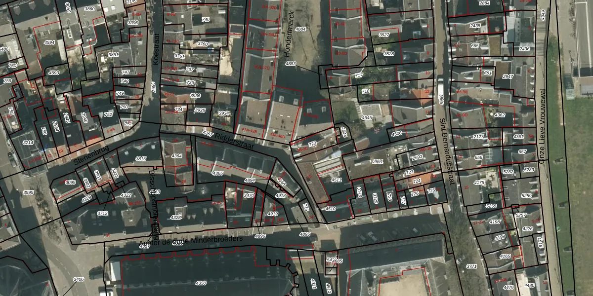 Ridderstraat 3-B is gelegen op kadastraal perceel MTT00B720. Deze kadastrale aanduiding is uniek en wordt gebruikt door het Kadaster om eigendomsrechten en andere zakelijke rechten vast te leggen. Het perceel maakt onderdeel uit van de kadastrale gemeente Maastricht.