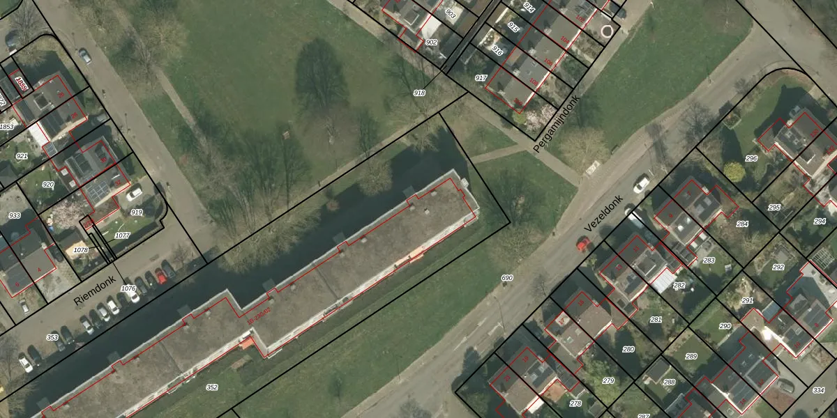 Het perceel waarop Riemdonk 1-C staat heeft een oppervlakte van 4325 m². Dit is een zeer groot perceel. De perceeloppervlakte wordt geregistreerd door het Kadaster. Gedetailleerde informatie over de maten van dit perceel kunt u vinden in het rapport Kadastrale kaart met maatvoering van Riemdonk 1-C.