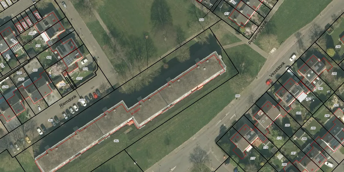 Het perceel waarop Riemdonk 7-C staat heeft een oppervlakte van 4325 m². Dit is een zeer groot perceel. De perceeloppervlakte wordt geregistreerd door het Kadaster. Gedetailleerde informatie over de maten van dit perceel kunt u vinden in het rapport Kadastrale kaart met maatvoering van Riemdonk 7-C.