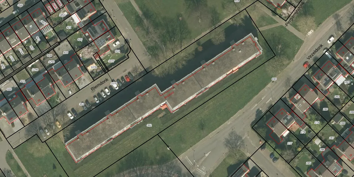 Het perceel waarop Riemdonk 9-C staat heeft een oppervlakte van 4325 m². Dit is een zeer groot perceel. De perceeloppervlakte wordt geregistreerd door het Kadaster. Gedetailleerde informatie over de maten van dit perceel kunt u vinden in het rapport Kadastrale kaart met maatvoering van Riemdonk 9-C.