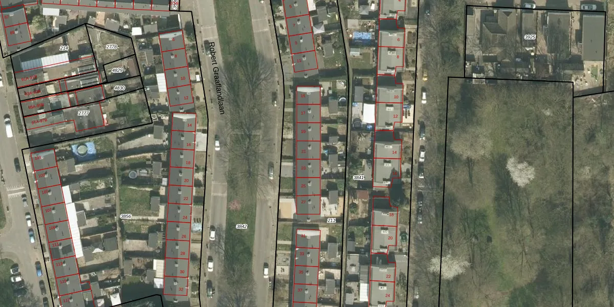 Het perceel waarop Robert Graaflandlaan 21 staat heeft een oppervlakte van 3270 m². Dit is een zeer groot perceel. De perceeloppervlakte wordt geregistreerd door het Kadaster. Gedetailleerde informatie over de maten van dit perceel kunt u vinden in het rapport Kadastrale kaart met maatvoering van Robert Graaflandlaan 21.