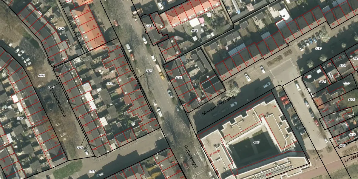 Het perceel waarop Ruttensingel 71 staat heeft een oppervlakte van 721 m². Dit is een groot perceel. De perceeloppervlakte wordt geregistreerd door het Kadaster. Gedetailleerde informatie over de maten van dit perceel kunt u vinden in het rapport Kadastrale kaart met maatvoering van Ruttensingel 71.