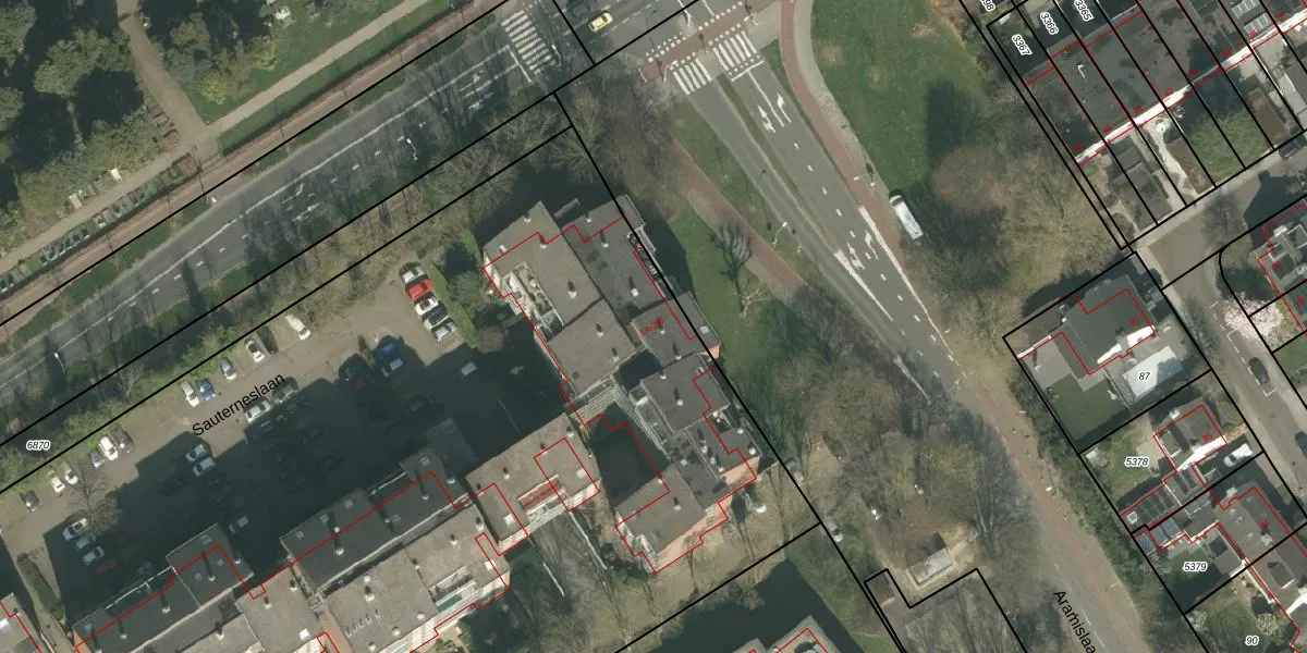 Het perceel waarop Sauterneslaan 9-D staat heeft een oppervlakte van 1,3 ha. Dit is een zeer groot perceel. De perceeloppervlakte wordt geregistreerd door het Kadaster. Gedetailleerde informatie over de maten van dit perceel kunt u vinden in het rapport Kadastrale kaart met maatvoering van Sauterneslaan 9-D.