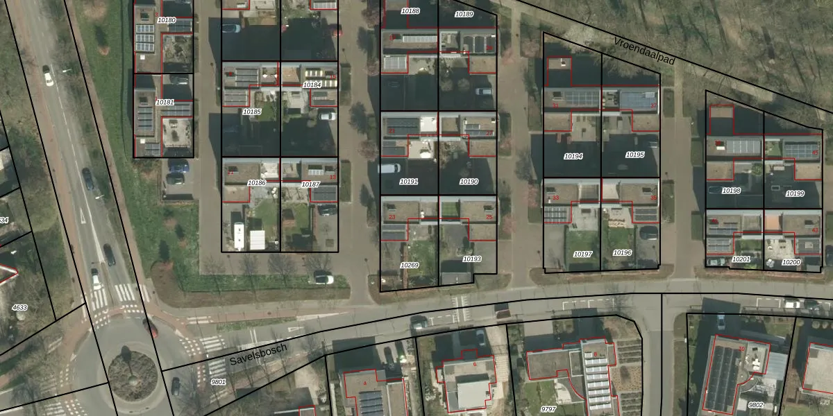 Het perceel waarop Savelsbosch 23 staat heeft een oppervlakte van 317 m². Dit is een groot perceel. De perceeloppervlakte wordt geregistreerd door het Kadaster. Gedetailleerde informatie over de maten van dit perceel kunt u vinden in het rapport Kadastrale kaart met maatvoering van Savelsbosch 23.