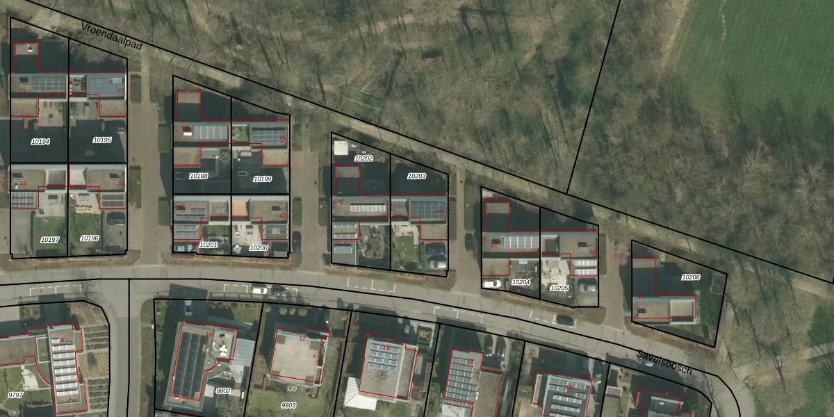 Het perceel waarop Savelsbosch 49 staat heeft een oppervlakte van 365 m². Dit is een groot perceel. De perceeloppervlakte wordt geregistreerd door het Kadaster. Gedetailleerde informatie over de maten van dit perceel kunt u vinden in het rapport Kadastrale kaart met maatvoering van Savelsbosch 49.