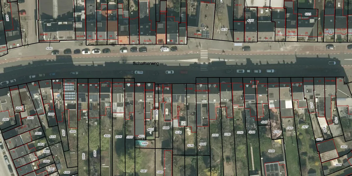 Het perceel waarop Scharnerweg 59-B staat heeft een oppervlakte van 314 m². Dit is een groot perceel. De perceeloppervlakte wordt geregistreerd door het Kadaster. Gedetailleerde informatie over de maten van dit perceel kunt u vinden in het rapport Kadastrale kaart met maatvoering van Scharnerweg 59-B.
