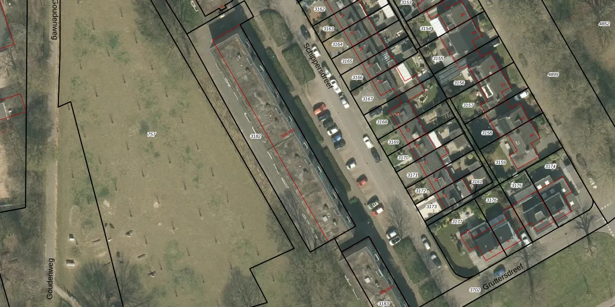 Het perceel waarop Schippersdreef 40-C staat heeft een oppervlakte van 1433 m². Dit is een zeer groot perceel. De perceeloppervlakte wordt geregistreerd door het Kadaster. Gedetailleerde informatie over de maten van dit perceel kunt u vinden in het rapport Kadastrale kaart met maatvoering van Schippersdreef 40-C.