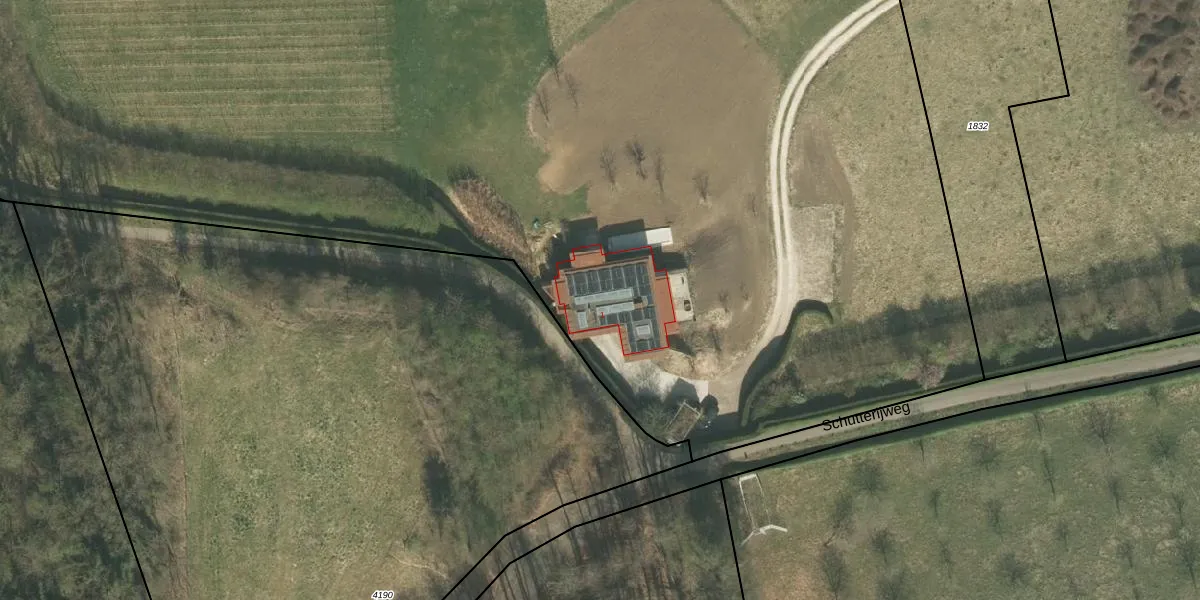 Schutterijweg 1 is gelegen op kadastraal perceel PTR00B4481. Deze kadastrale aanduiding is uniek en wordt gebruikt door het Kadaster om eigendomsrechten en andere zakelijke rechten vast te leggen. Het perceel maakt onderdeel uit van de kadastrale gemeente Sint Pieter.