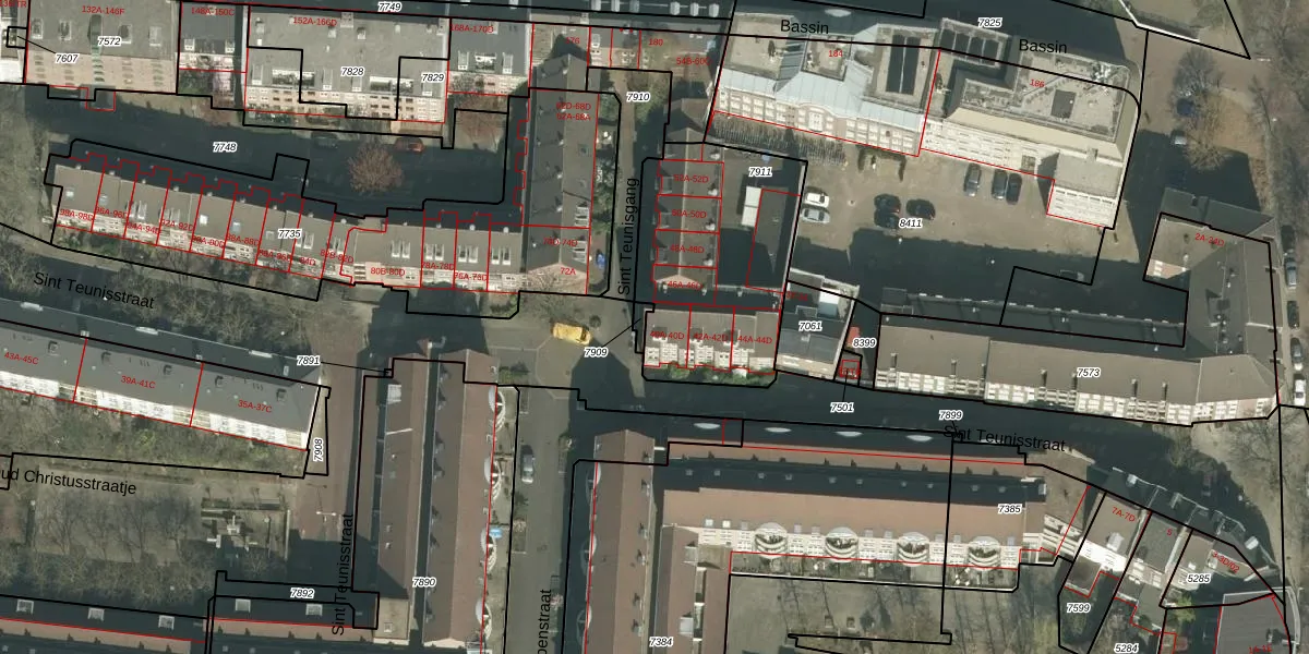 Sint Teunisgang 40-D is gelegen op kadastraal perceel MTT00A7911. Deze kadastrale aanduiding is uniek en wordt gebruikt door het Kadaster om eigendomsrechten en andere zakelijke rechten vast te leggen. Het perceel maakt onderdeel uit van de kadastrale gemeente Maastricht.