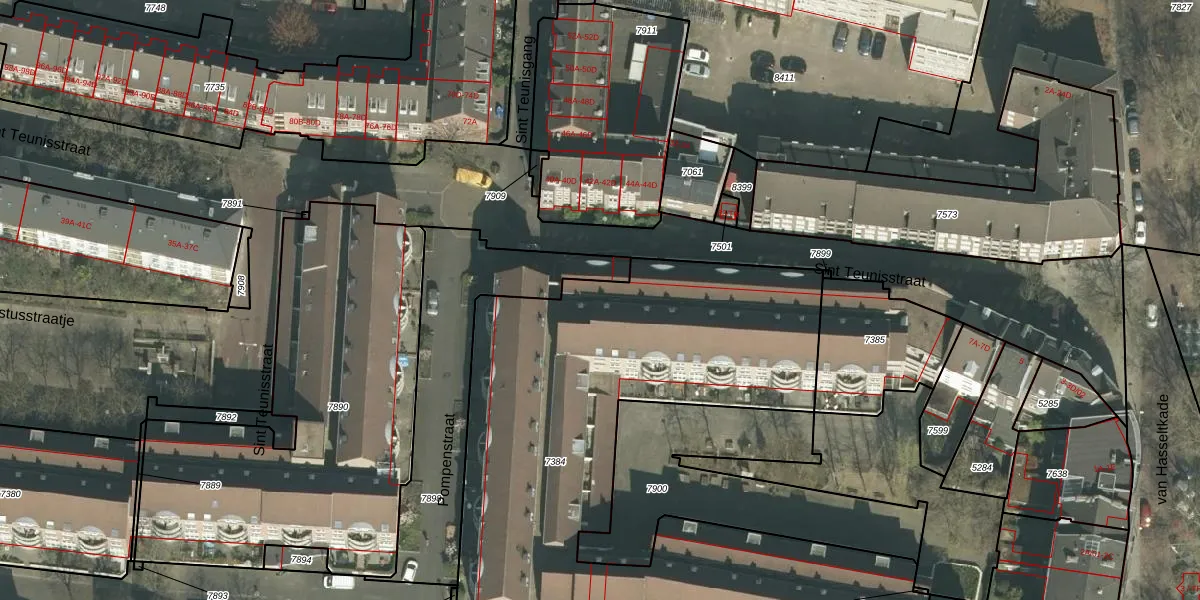 Sint Teunisstraat 31-B is gelegen op kadastraal perceel MTT00A7384. Deze kadastrale aanduiding is uniek en wordt gebruikt door het Kadaster om eigendomsrechten en andere zakelijke rechten vast te leggen. Het perceel maakt onderdeel uit van de kadastrale gemeente Maastricht.