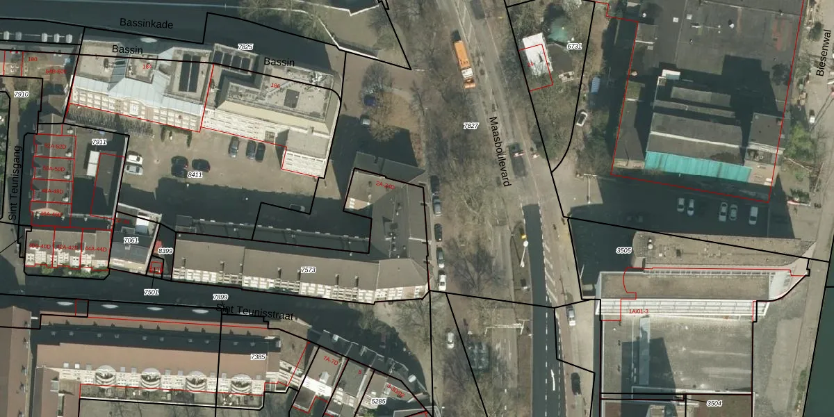 Het adres ligt op het perceel MTT00-A-7573, dat zich in de kadastrale gemeente Maastricht bevindt. Het perceel is 1020 m² groot. Dat is kleiner dan de gemiddelde perceeloppervlakte in Maastricht, dat op 1137,21 m² ligt. Het grootste perceel in de kadastrale gemeente is 53,8 ha. Het kleinste perceel heeft een oppervlakte van 0 m². Er zijn 48 adressen aanwezig op het perceel. De laatste wijziging in het de Basisregistratie Kadaster (BRK) was op 18-08-2021.