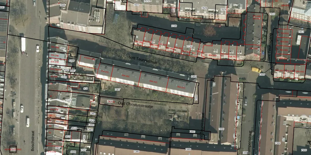 Het perceel waarop Sint Teunisstraat 41-C staat heeft een oppervlakte van 1317 m². Dit is een zeer groot perceel. De perceeloppervlakte wordt geregistreerd door het Kadaster. Gedetailleerde informatie over de maten van dit perceel kunt u vinden in het rapport Kadastrale kaart met maatvoering van Sint Teunisstraat 41-C.