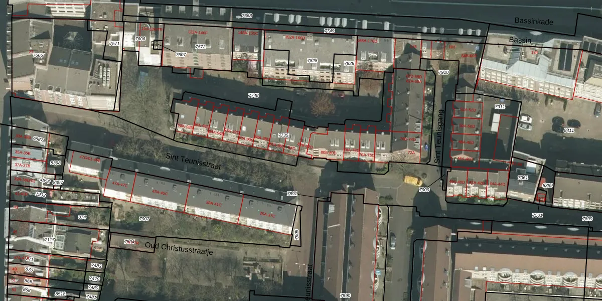 Sint Teunisstraat 82-B is gelegen op kadastraal perceel MTT00A7735. Deze kadastrale aanduiding is uniek en wordt gebruikt door het Kadaster om eigendomsrechten en andere zakelijke rechten vast te leggen. Het perceel maakt onderdeel uit van de kadastrale gemeente Maastricht.