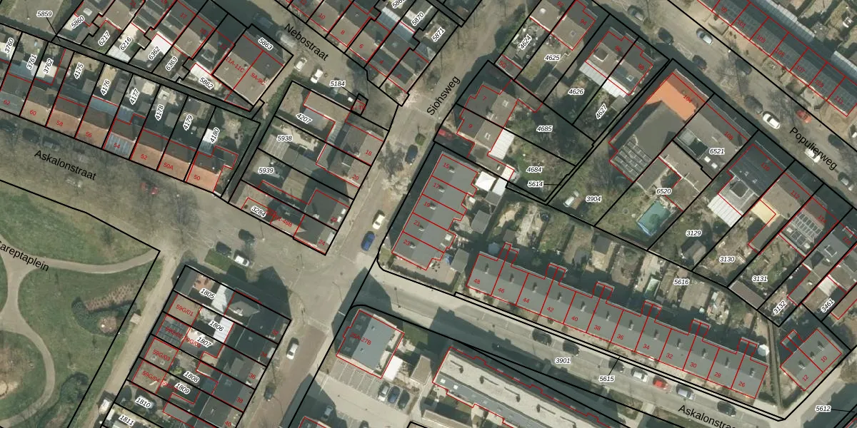 Het perceel waarop Sionsweg 19 staat heeft een oppervlakte van 2733 m². Dit is een zeer groot perceel. De perceeloppervlakte wordt geregistreerd door het Kadaster. Gedetailleerde informatie over de maten van dit perceel kunt u vinden in het rapport Kadastrale kaart met maatvoering van Sionsweg 19.