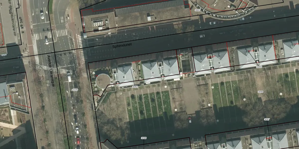 Het perceel waarop het adres ligt is MTT00-E-3092. De afkorting 'MTT00' staat voor kadastrale gemeente Maastricht. Het perceel is kleiner dan gemiddeld in Maastricht. Het perceel is 1045 m² groot, terwijl het gemiddelde ligt op 1137,38 m². De grootste perceeloppervlakte in de kadastrale gemeente is 53,8 ha. De kleinste oppervlakte bedraagt 0 m². Op het perceel zijn 39 adressen aanwezig. De huidige grenzen van het perceel zijn digitaal in de Basisregistratie Kadaster (BRK) geregistreerd op 09-02-2006.