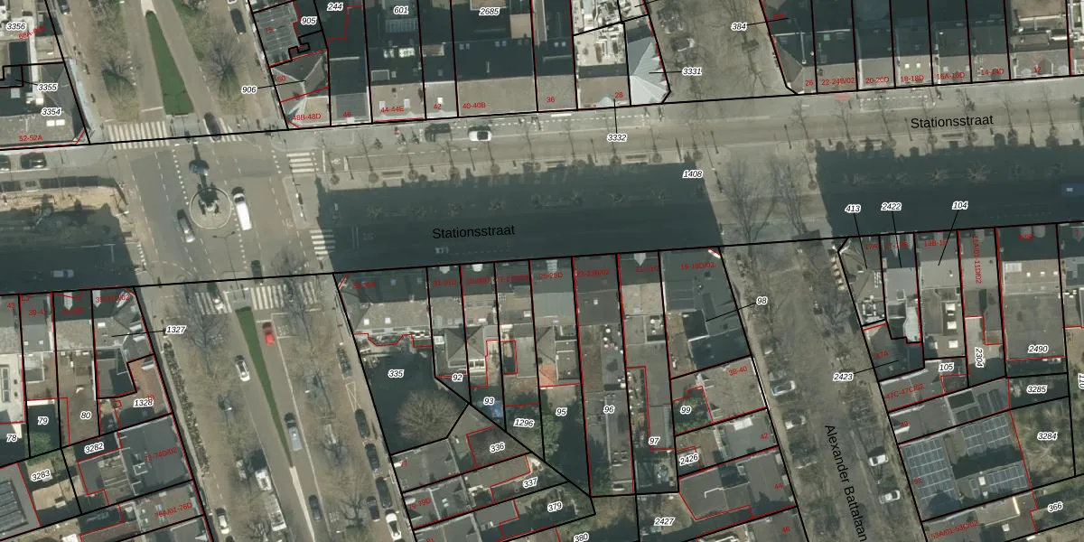 Het perceel waarop Stationsstraat 25-B staat heeft een oppervlakte van 333 m². Dit is een groot perceel. De perceeloppervlakte wordt geregistreerd door het Kadaster. Gedetailleerde informatie over de maten van dit perceel kunt u vinden in het rapport Kadastrale kaart met maatvoering van Stationsstraat 25-B.