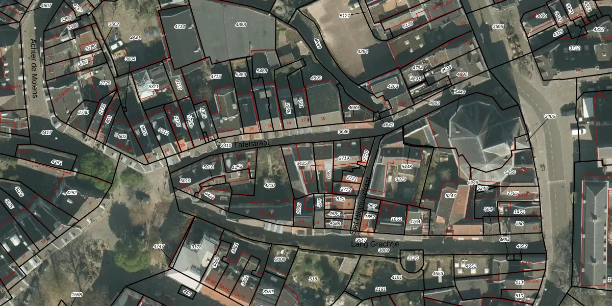 Tafelstraat 7 is gelegen op kadastraal perceel MTT00B3425. Deze kadastrale aanduiding is uniek en wordt gebruikt door het Kadaster om eigendomsrechten en andere zakelijke rechten vast te leggen. Het perceel maakt onderdeel uit van de kadastrale gemeente Maastricht.