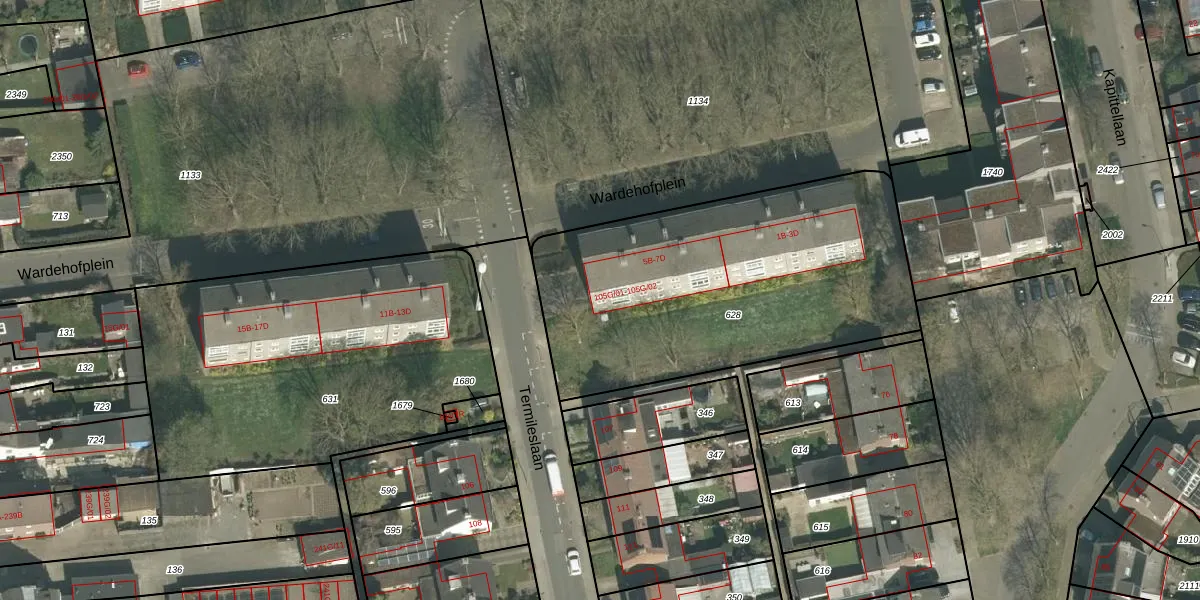 Het perceel waarop Termileslaan 105-G-02 staat heeft een oppervlakte van 1707 m². Dit is een zeer groot perceel. De perceeloppervlakte wordt geregistreerd door het Kadaster. Gedetailleerde informatie over de maten van dit perceel kunt u vinden in het rapport Kadastrale kaart met maatvoering van Termileslaan 105-G-02.