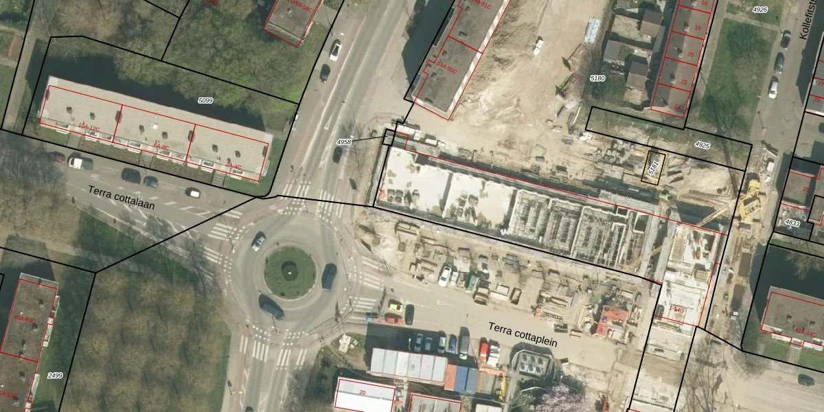 Het perceel waarop Terra cottaplein 2 staat heeft een oppervlakte van 8589 m². Dit is een zeer groot perceel. De perceeloppervlakte wordt geregistreerd door het Kadaster. Gedetailleerde informatie over de maten van dit perceel kunt u vinden in het rapport Kadastrale kaart met maatvoering van Terra cottaplein 2.