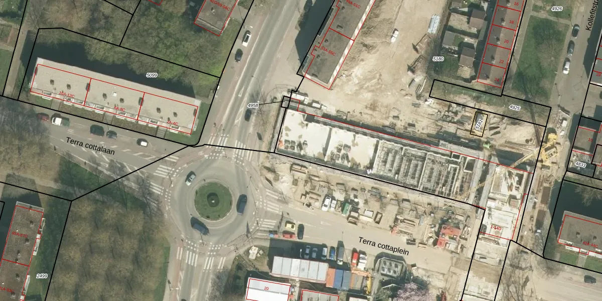 Het perceel waarop Terra cottaplein 2-C staat heeft een oppervlakte van 8589 m². Dit is een zeer groot perceel. De perceeloppervlakte wordt geregistreerd door het Kadaster. Gedetailleerde informatie over de maten van dit perceel kunt u vinden in het rapport Kadastrale kaart met maatvoering van Terra cottaplein 2-C.