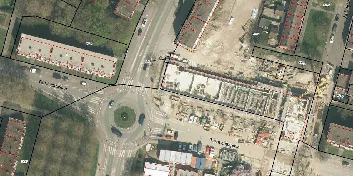 Het perceel waarop Terra cottaplein 2-D staat heeft een oppervlakte van 8589 m². Dit is een zeer groot perceel. De perceeloppervlakte wordt geregistreerd door het Kadaster. Gedetailleerde informatie over de maten van dit perceel kunt u vinden in het rapport Kadastrale kaart met maatvoering van Terra cottaplein 2-D.