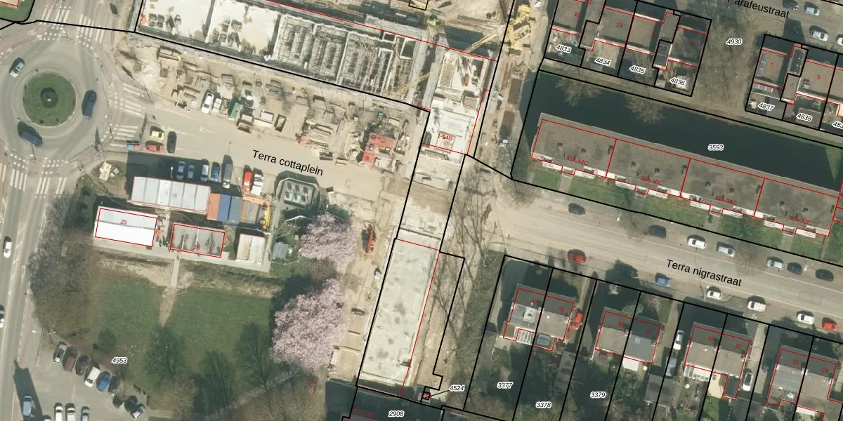 Het perceel waarop Terra cottaplein 7-C staat heeft een oppervlakte van 8589 m². Dit is een zeer groot perceel. De perceeloppervlakte wordt geregistreerd door het Kadaster. Gedetailleerde informatie over de maten van dit perceel kunt u vinden in het rapport Kadastrale kaart met maatvoering van Terra cottaplein 7-C.