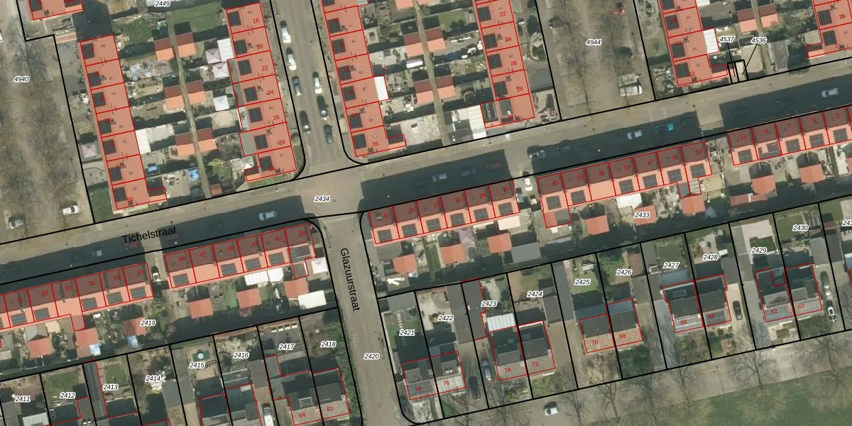 Tichelstraat 33 is gelegen op kadastraal perceel MTT00K2433. Deze kadastrale aanduiding is uniek en wordt gebruikt door het Kadaster om eigendomsrechten en andere zakelijke rechten vast te leggen. Het perceel maakt onderdeel uit van de kadastrale gemeente Maastricht.
