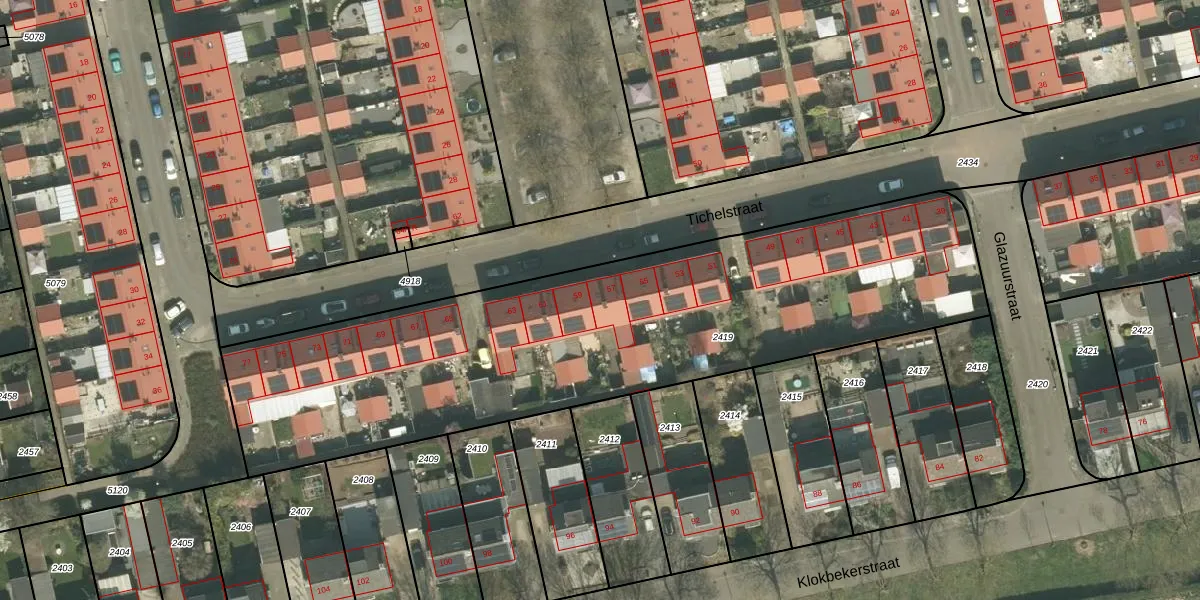 Het perceel waarop Tichelstraat 57 staat heeft een oppervlakte van 2775 m². Dit is een zeer groot perceel. De perceeloppervlakte wordt geregistreerd door het Kadaster. Gedetailleerde informatie over de maten van dit perceel kunt u vinden in het rapport Kadastrale kaart met maatvoering van Tichelstraat 57.