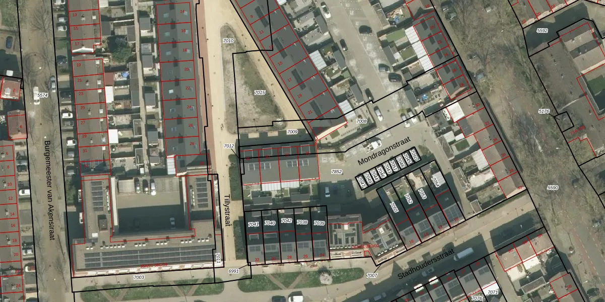 Tillystraat 25 is gelegen op kadastraal perceel MTT00G7008. Deze kadastrale aanduiding is uniek en wordt gebruikt door het Kadaster om eigendomsrechten en andere zakelijke rechten vast te leggen. Het perceel maakt onderdeel uit van de kadastrale gemeente Maastricht.