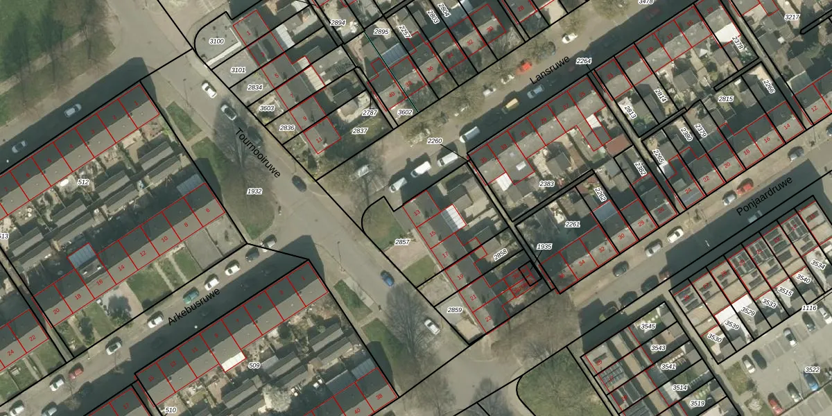 Het perceel waarop Tournooiruwe 13 staat heeft een oppervlakte van 555 m². Dit is een groot perceel. De perceeloppervlakte wordt geregistreerd door het Kadaster. Gedetailleerde informatie over de maten van dit perceel kunt u vinden in het rapport Kadastrale kaart met maatvoering van Tournooiruwe 13.