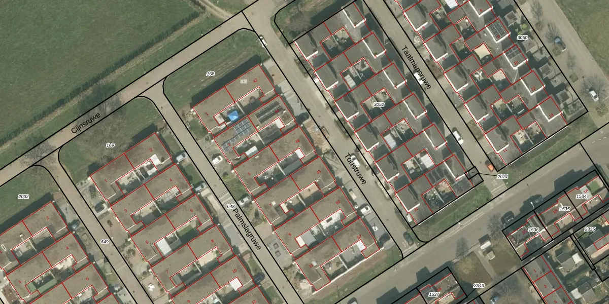 Het perceel waarop Toustruwe 46 staat heeft een oppervlakte van 3325 m². Dit is een zeer groot perceel. De perceeloppervlakte wordt geregistreerd door het Kadaster. Gedetailleerde informatie over de maten van dit perceel kunt u vinden in het rapport Kadastrale kaart met maatvoering van Toustruwe 46.