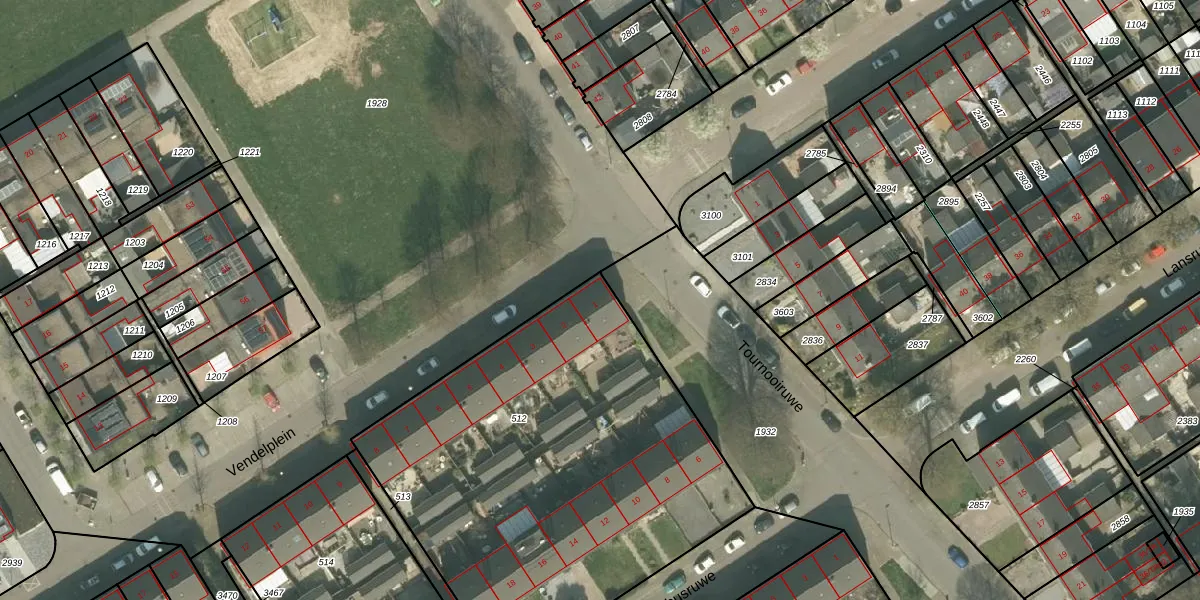 Het perceel waarop Vendelplein 1 staat heeft een oppervlakte van 2345 m². Dit is een zeer groot perceel. De perceeloppervlakte wordt geregistreerd door het Kadaster. Gedetailleerde informatie over de maten van dit perceel kunt u vinden in het rapport Kadastrale kaart met maatvoering van Vendelplein 1.