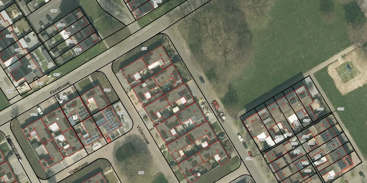 Het perceel waarop Vendelplein 28 staat heeft een oppervlakte van 2995 m². Dit is een zeer groot perceel. De perceeloppervlakte wordt geregistreerd door het Kadaster. Gedetailleerde informatie over de maten van dit perceel kunt u vinden in het rapport Kadastrale kaart met maatvoering van Vendelplein 28.