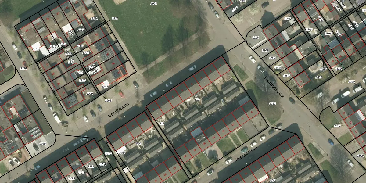 Het perceel waarop Vendelplein 5 staat heeft een oppervlakte van 2345 m². Dit is een zeer groot perceel. De perceeloppervlakte wordt geregistreerd door het Kadaster. Gedetailleerde informatie over de maten van dit perceel kunt u vinden in het rapport Kadastrale kaart met maatvoering van Vendelplein 5.