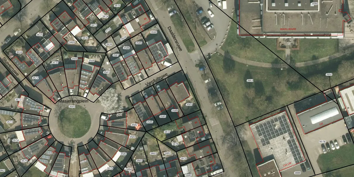 Vierduitruwe 1 is gelegen op kadastraal perceel MTT00L3583. Deze kadastrale aanduiding is uniek en wordt gebruikt door het Kadaster om eigendomsrechten en andere zakelijke rechten vast te leggen. Het perceel maakt onderdeel uit van de kadastrale gemeente Maastricht.