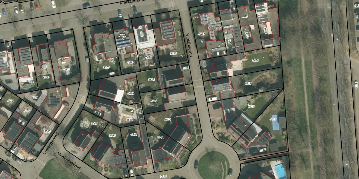 Het perceel waarop Violabeemd 41 staat heeft een oppervlakte van 359 m². Dit is een groot perceel. De perceeloppervlakte wordt geregistreerd door het Kadaster. Gedetailleerde informatie over de maten van dit perceel kunt u vinden in het rapport Kadastrale kaart met maatvoering van Violabeemd 41.
