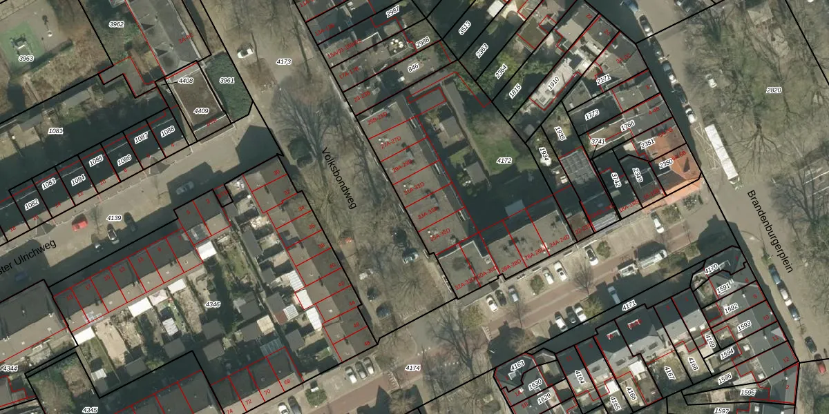 Volksbondweg 33-A is gelegen op kadastraal perceel MTT00D4172. Deze kadastrale aanduiding is uniek en wordt gebruikt door het Kadaster om eigendomsrechten en andere zakelijke rechten vast te leggen. Het perceel maakt onderdeel uit van de kadastrale gemeente Maastricht.