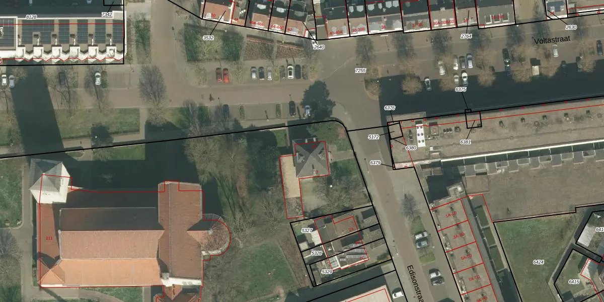 Het perceel waarop Voltastraat 45 staat heeft een oppervlakte van 8499 m². Dit is een zeer groot perceel. De perceeloppervlakte wordt geregistreerd door het Kadaster. Gedetailleerde informatie over de maten van dit perceel kunt u vinden in het rapport Kadastrale kaart met maatvoering van Voltastraat 45.