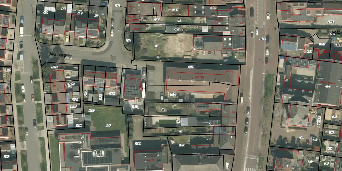Het perceel waarop Walburg 62-B staat heeft een oppervlakte van 707 m². Dit is een groot perceel. De perceeloppervlakte wordt geregistreerd door het Kadaster. Gedetailleerde informatie over de maten van dit perceel kunt u vinden in het rapport Kadastrale kaart met maatvoering van Walburg 62-B.