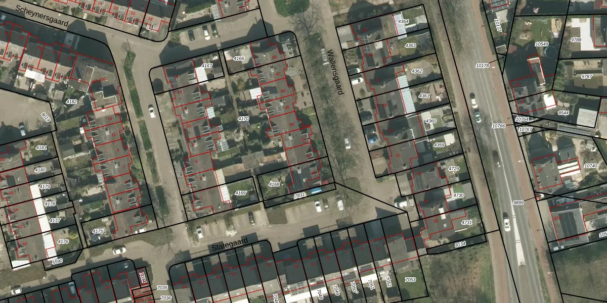 Het perceel waarop Wallensgaard 52 staat heeft een oppervlakte van 1755 m². Dit is een zeer groot perceel. De perceeloppervlakte wordt geregistreerd door het Kadaster. Gedetailleerde informatie over de maten van dit perceel kunt u vinden in het rapport Kadastrale kaart met maatvoering van Wallensgaard 52.