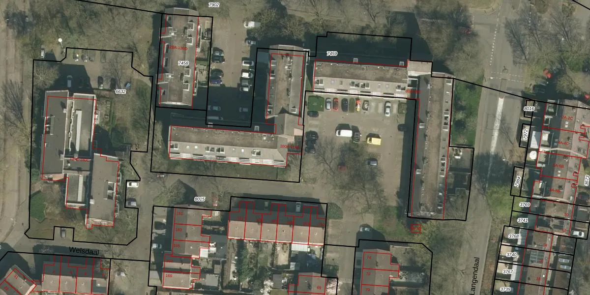Het perceel waarop Welsdaal 104-E staat heeft een oppervlakte van 2966 m². Dit is een zeer groot perceel. De perceeloppervlakte wordt geregistreerd door het Kadaster. Gedetailleerde informatie over de maten van dit perceel kunt u vinden in het rapport Kadastrale kaart met maatvoering van Welsdaal 104-E.