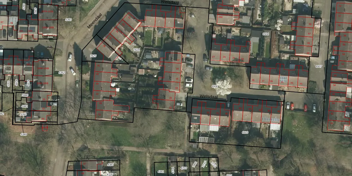 Het perceel waarop Welsdaal 18 staat heeft een oppervlakte van 3266 m². Dit is een zeer groot perceel. De perceeloppervlakte wordt geregistreerd door het Kadaster. Gedetailleerde informatie over de maten van dit perceel kunt u vinden in het rapport Kadastrale kaart met maatvoering van Welsdaal 18.