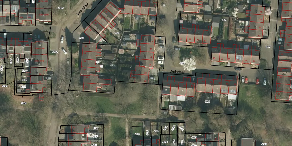 Het perceel waarop Welsdaal 20 staat heeft een oppervlakte van 3266 m². Dit is een zeer groot perceel. De perceeloppervlakte wordt geregistreerd door het Kadaster. Gedetailleerde informatie over de maten van dit perceel kunt u vinden in het rapport Kadastrale kaart met maatvoering van Welsdaal 20.