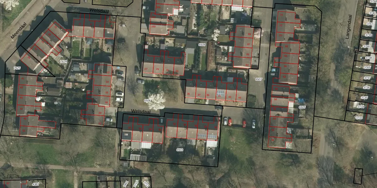Het perceel waarop Welsdaal 35 staat heeft een oppervlakte van 3562 m². Dit is een zeer groot perceel. De perceeloppervlakte wordt geregistreerd door het Kadaster. Gedetailleerde informatie over de maten van dit perceel kunt u vinden in het rapport Kadastrale kaart met maatvoering van Welsdaal 35.