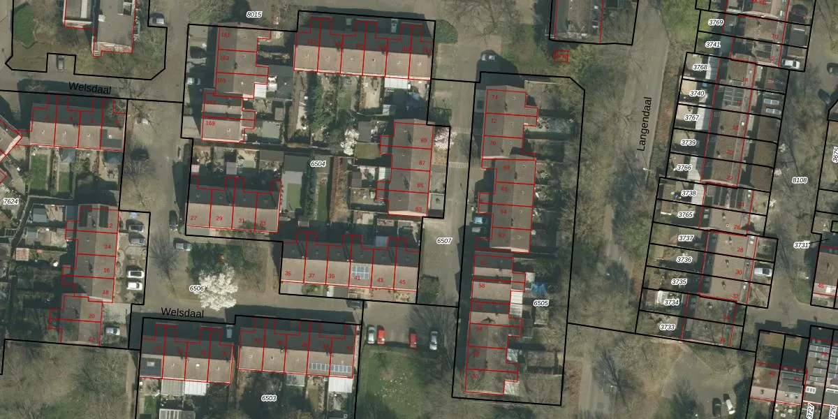 Het perceel waarop Welsdaal 63 staat heeft een oppervlakte van 3562 m². Dit is een zeer groot perceel. De perceeloppervlakte wordt geregistreerd door het Kadaster. Gedetailleerde informatie over de maten van dit perceel kunt u vinden in het rapport Kadastrale kaart met maatvoering van Welsdaal 63.