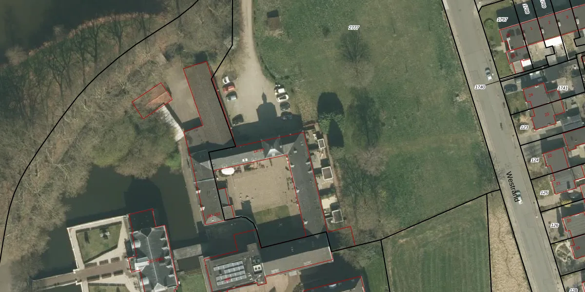 Het perceel waarop Westrand 1-E staat heeft een oppervlakte van 1,0 ha. Dit is een zeer groot perceel. De perceeloppervlakte wordt geregistreerd door het Kadaster. Gedetailleerde informatie over de maten van dit perceel kunt u vinden in het rapport Kadastrale kaart met maatvoering van Westrand 1-E.