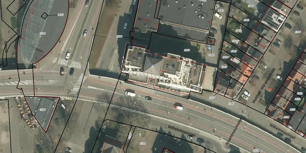 Wilhelminasingel 1-E is gelegen op kadastraal perceel MTT00E2690. Deze kadastrale aanduiding is uniek en wordt gebruikt door het Kadaster om eigendomsrechten en andere zakelijke rechten vast te leggen. Het perceel maakt onderdeel uit van de kadastrale gemeente Maastricht.